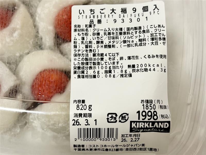 コストコ新商品「いちご大福 9個入り」の商品詳細